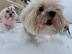 今日 雪やばくない? 凄い積もったやん。。 これは夜帰っておしっこ連れてった時の足跡🐾 まだそんなに積もってなかったのに。。。 朝起きたらまさかの雪国☃️ 昨日から降ってて,雪国のきょうかが1番はしゃいでたよ笑笑 はしゃいでる姿って可愛いよね💖 うちのわんこ達も朝積もった雪ではしゃいで走り回ってました🤪 でも寒いのか震えてたよ笑笑🫨 そんなこんなで今日は雪が積もってますが,遊びに来てください😁 足元気をつけて🦶 お越し下さいな♡
