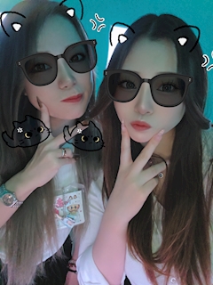 夜だね🌙♡ めあです! 今日も20時〜いるよ〜♡ これはななちゃんとのツーショいつも写真撮ってるんだけどマトモなの無くて笑ってる笑笑 連勤の折り返し〜待ってるね👋🏻🩵