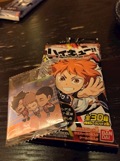 こんばんは(^^) せなです💜 ハイキューウエハース‼️ 音駒の名シーンのステッカー出たァ🩷 黒尾さん推しだから 単発じゃないけど 当たりってことで✌🏻✌🏻 本日も 21:00~ お待ちしてます🎶