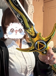 こんばんは〜🌟 るいです💜 昨日お店に置いてある剣持たせてもらったんだ〜✨ いかつい笑笑 これ、パチンコの牙狼っていうやつらしい笑笑💛🖤初めてみた笑笑 そしてお店は一周年‼️🌟 私はまだまだ入って一ヶ月くらいだけどこの大事なタイミングで一緒にお祝いできて嬉しいです😊😊🎉 でことで本日21時からいます🙌